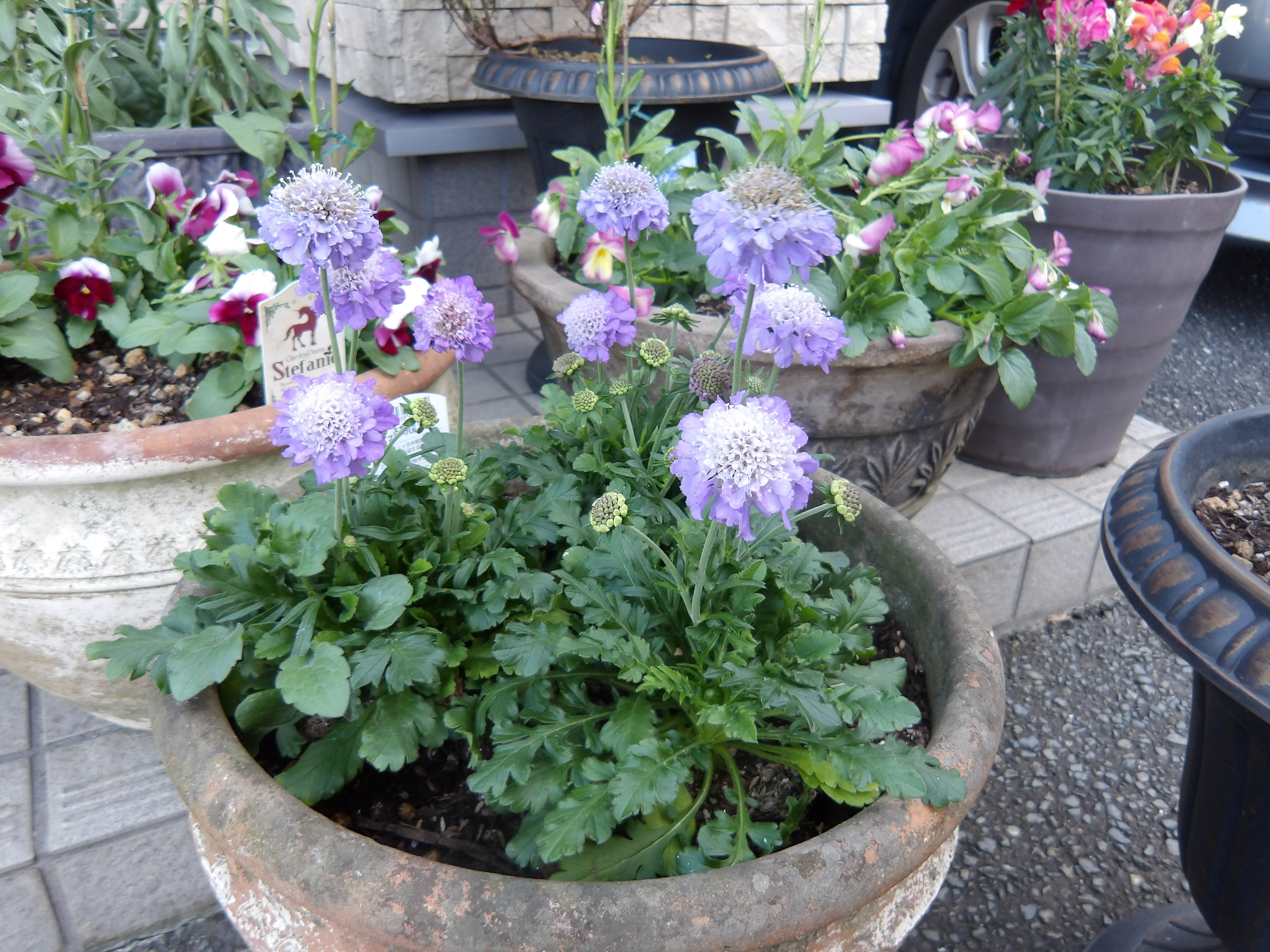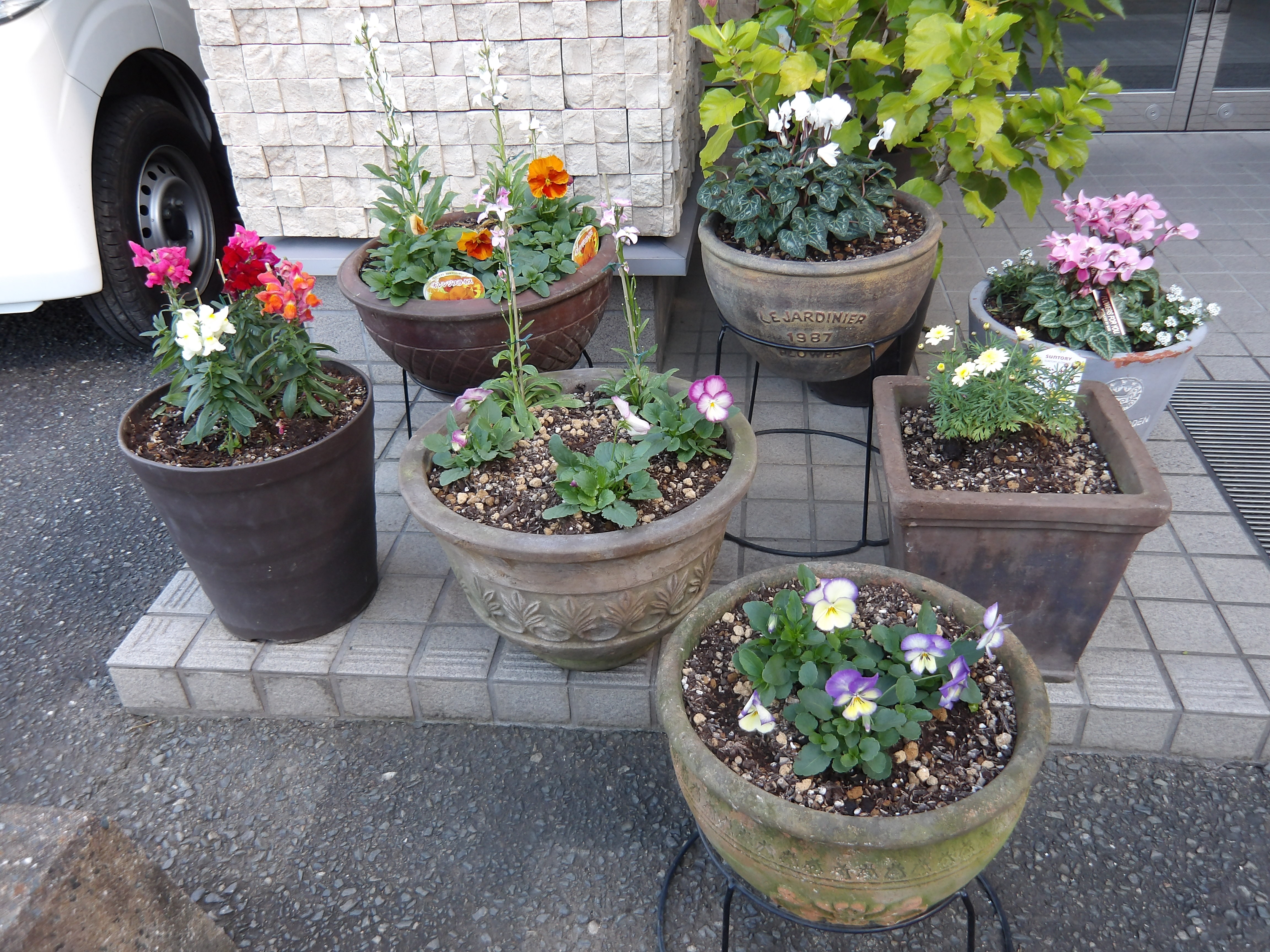 寄せ植えはあらかじめレイアウトをよく考えてから植え込むのですが、各々センスが問われます。性格が良く出ていますね。