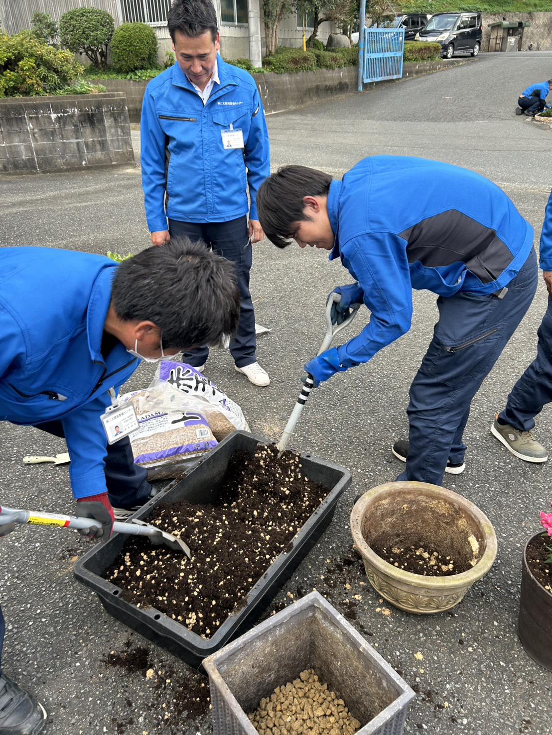 土に触れる事にはリラックスする効果もあるようで、普段は気を張って運転や作業を行っているおじさん達の心も癒されていきます。