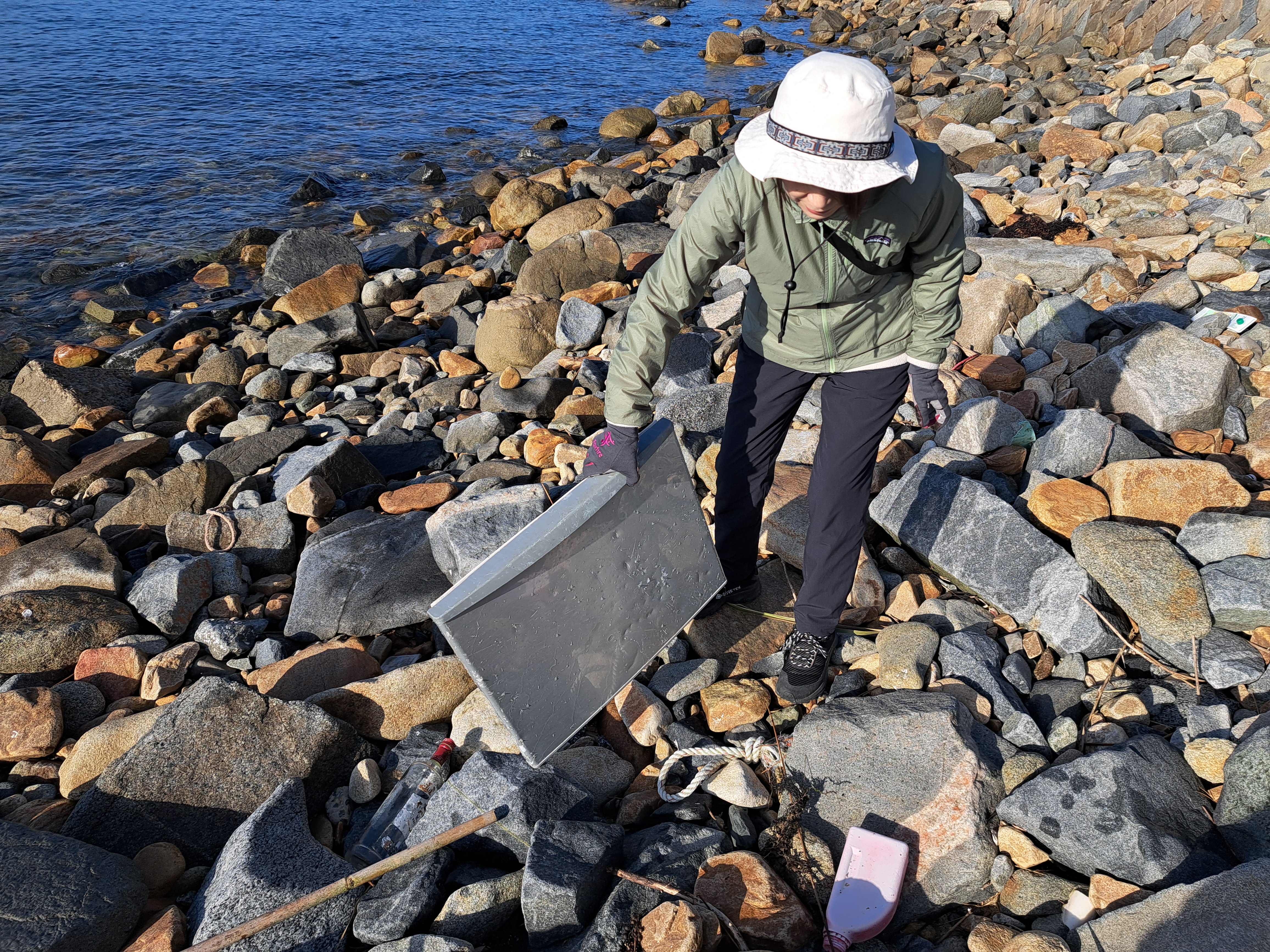 プラスチック製の大きなブイやロープの切れ端、ビニール袋などが目につきます。それを一つ一つ袋に詰めていくと最終的にはごみ袋4杯分になりました。