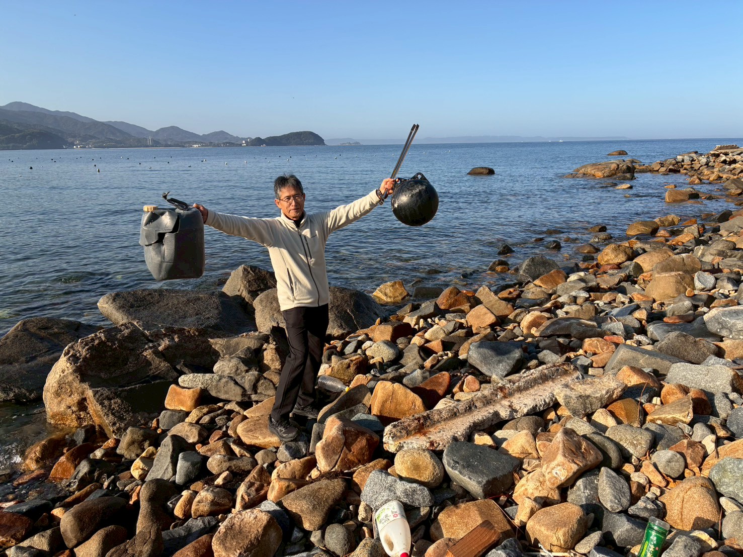 今日はごみを拾っている最中に波止場に釣りに来た方に声を掛けられました。「頑張りよるね、いつもありがとう。」ぼくらの活動を見ていてくれた人がいたんだ。新年早々勇気をいただき、よーし今年も一年頑張るぞー!と決心しました。