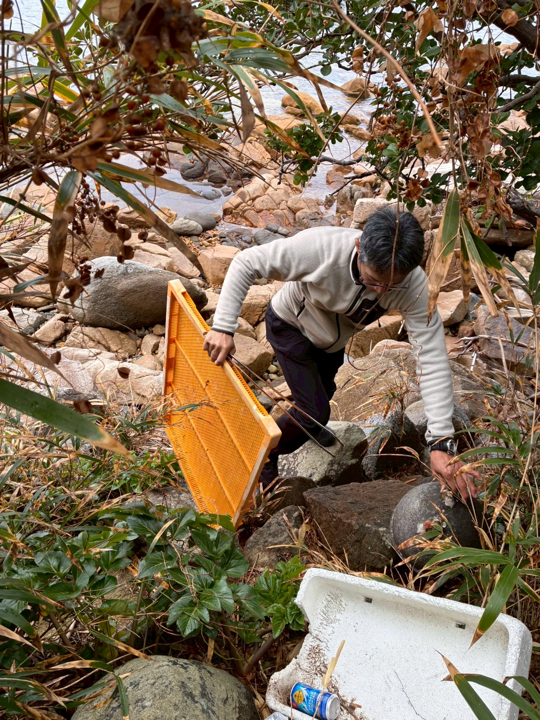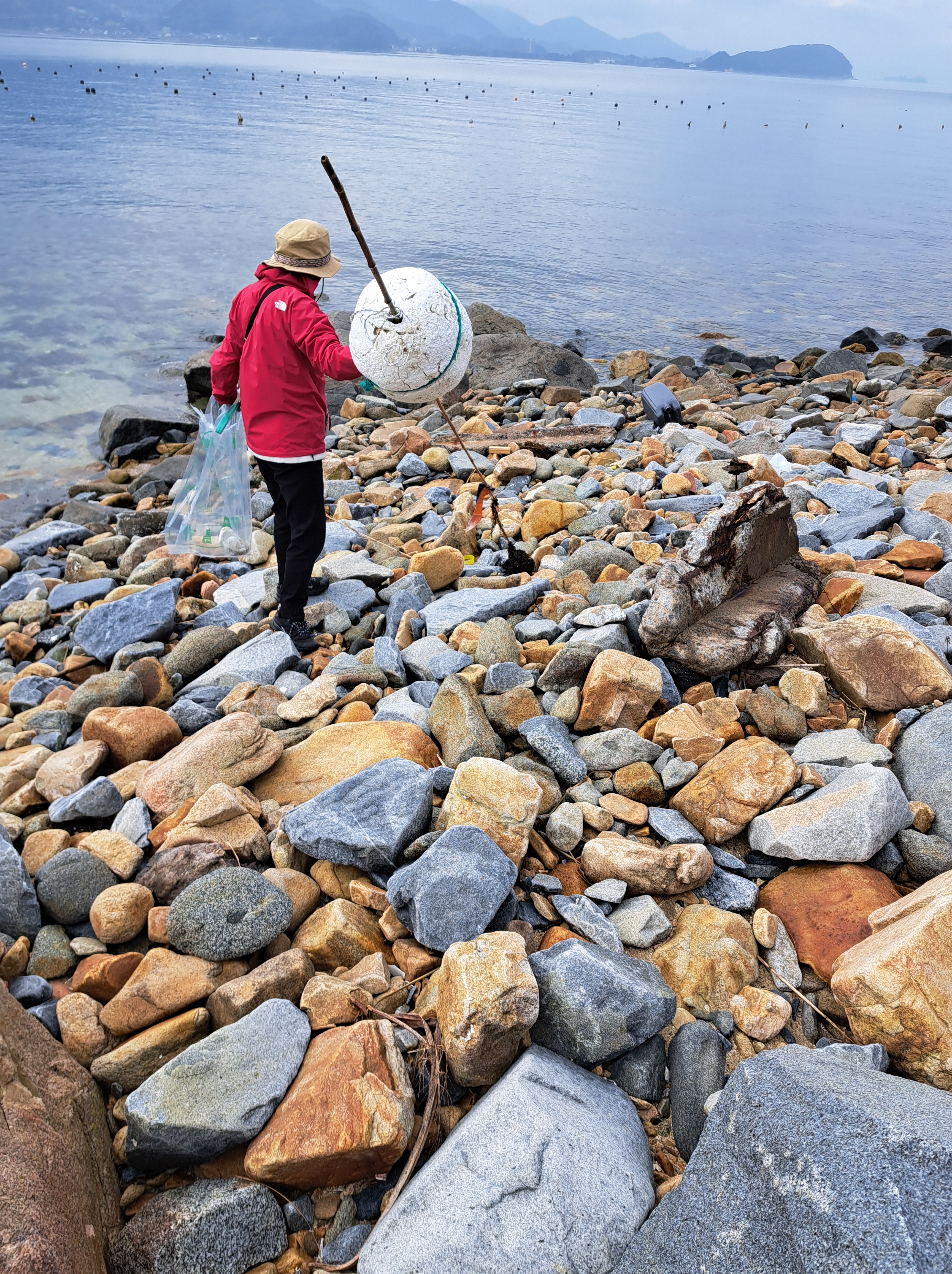 スタッフブログ 2月の波止場清掃記録 2026.02.17 朝方まで降り続いていた雨も上がり予定通り波止場清掃もできそうです。曇っていますが今日は17度まで上がる予報で波止場清掃日和になりそうです。 早咲きの河津桜も淡いピンクの花を枝いっぱいに咲かせています。 いつものようにごみ袋とトングを手にごみ拾いスタート。たばこの吸い殻やビニールの切れ端を拾いながら波打ち際に降りていくとグレーのポリタンクが3つも流れ着いています。はるか遠い海の向こうからやって来たようです。長旅お疲れさまでした。 いつもはきれいな砂浜にも大きな赤いブイが。すごい違和感ですね。 これは発泡スチロール。漁業用のブイに使っていたのかな? プラスチック製のネットも引き上げます。 今年はツバキの花がきれいに咲いていますね。思わずごみを拾う手も止まってしまいます。 ぼくらはいつも、今日は空が青く海も澄み渡っているとか、花がきれいに咲いているねとかいろいろなことに感動しながらごみ拾いを行っています。こんな素晴らしい環境を未来につなげることがぼくらの使命だと思っています。これからも波止場清掃を続けていきますのでぼくらの活動に気付いたら声を掛けてくださいね。 ぼくらはこの地球でしか生きていけないよね。 いつまでも平和で美しい地球でありますように! 『PEACE FOR ALL』 2026.2.15 nijyo environment Post Share Hatena LINE RSS feedly Pin it note この記事のタイトルとURLをコピーする 投稿者: 二丈環境 スタッフ スタッフブログ コメント: 0 ボウリング大会を開催いたしました!! 前の記事