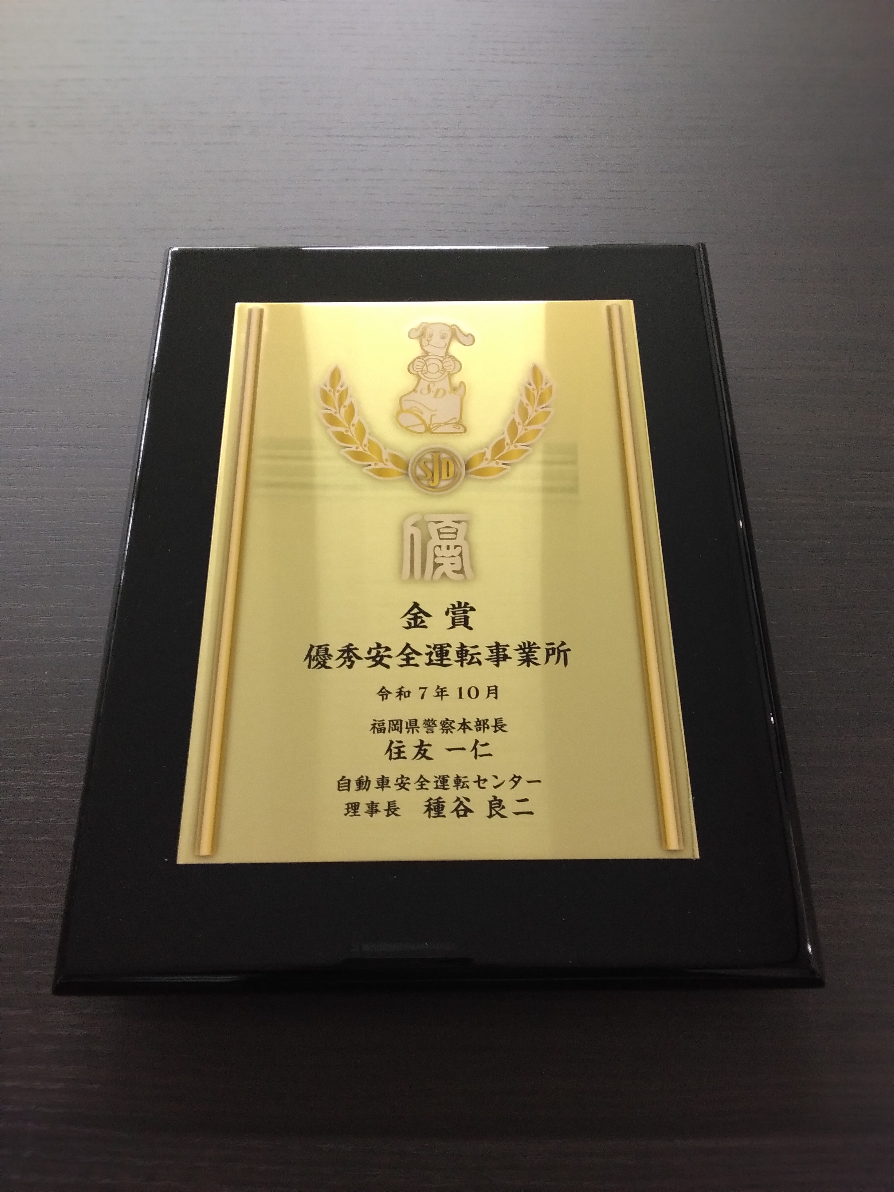 優秀安全運転事業所『金賞』をいただきました! 2025.12.12 優秀安全運転事業所『金賞』をいただきました! 今回は、 福岡県警察本部長 住友 一仁様 自動車安全運転センター理事長 種谷 良二様 連名表彰です。 毎年1度SDカードを申請し、1年間の無違反・安全運転を皆で確認しております。 実は・・・・・ さらに上に『プラチナ賞』があります。 そのプラチナ賞を目指し、安全運転そしてマナーの良い運転を心がけ、これからも業務してまいります。 Post Share Hatena LINE RSS feedly Pin it note この記事のタイトルとURLをコピーする 『お盆期間中のゴミ回収のお知らせ』 前の記事 年末年始休業のお知らせ 次の記事