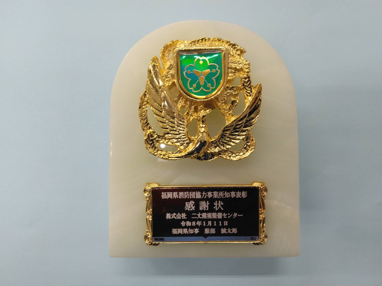 福岡県知事 服部 誠太郎様より感謝状をいただきました! 2026.02.02 弊社には、糸島市消防団員が5名在籍しております。 日頃の消防団活動や消防団員の確保を評価していただきました。 昼間はもとより、夜中でも休日でも火災や災害が発生した時は、いの一番に駆けつけます。 業務中でも、団員以外が団員分の仕事までバックアップする体制を取り一致団結、社員全員で取り組んでいます。 糸島の安全安心のため、業務にそして消防団活動に励んで参ります。 Post Share Hatena LINE RSS feedly Pin it note この記事のタイトルとURLをコピーする 正社員を募集しております! 前の記事